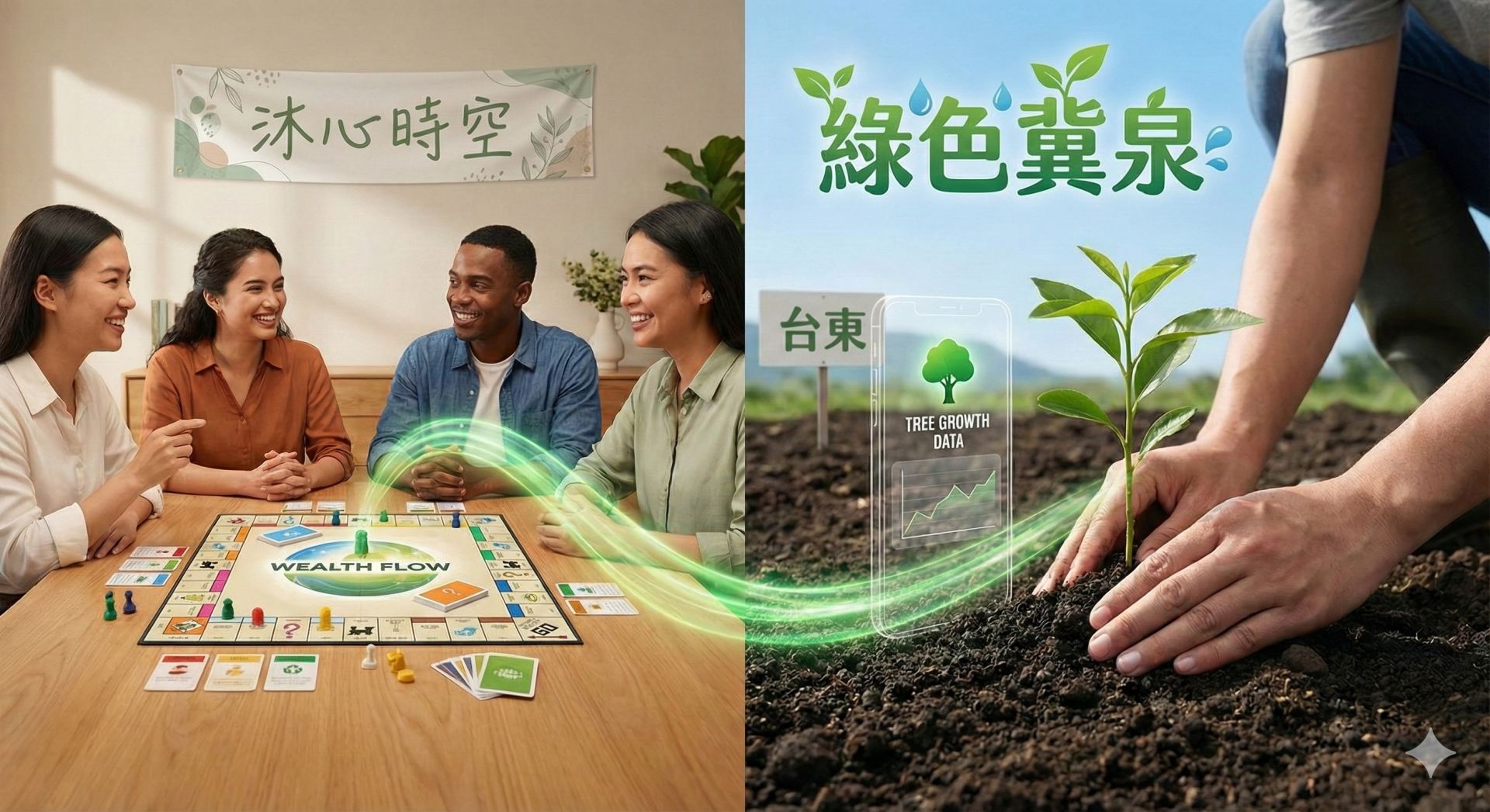 ▲ 【種下希望】沐心時空創新「Moosee 永續計畫」,民眾參與課程不僅能療癒身心,還能透過「綠色冀泉」在台東種下專屬樹苗,用手機 APP 即時追蹤生長紀錄,實踐 ESG 永續生活。(圖/AI生成)