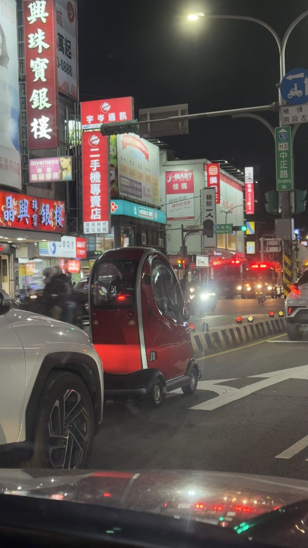 一輛要價約17.5萬的電動代步車,行駛在內線道準備轉彎,路過駕駛看到說「這樣也行」。