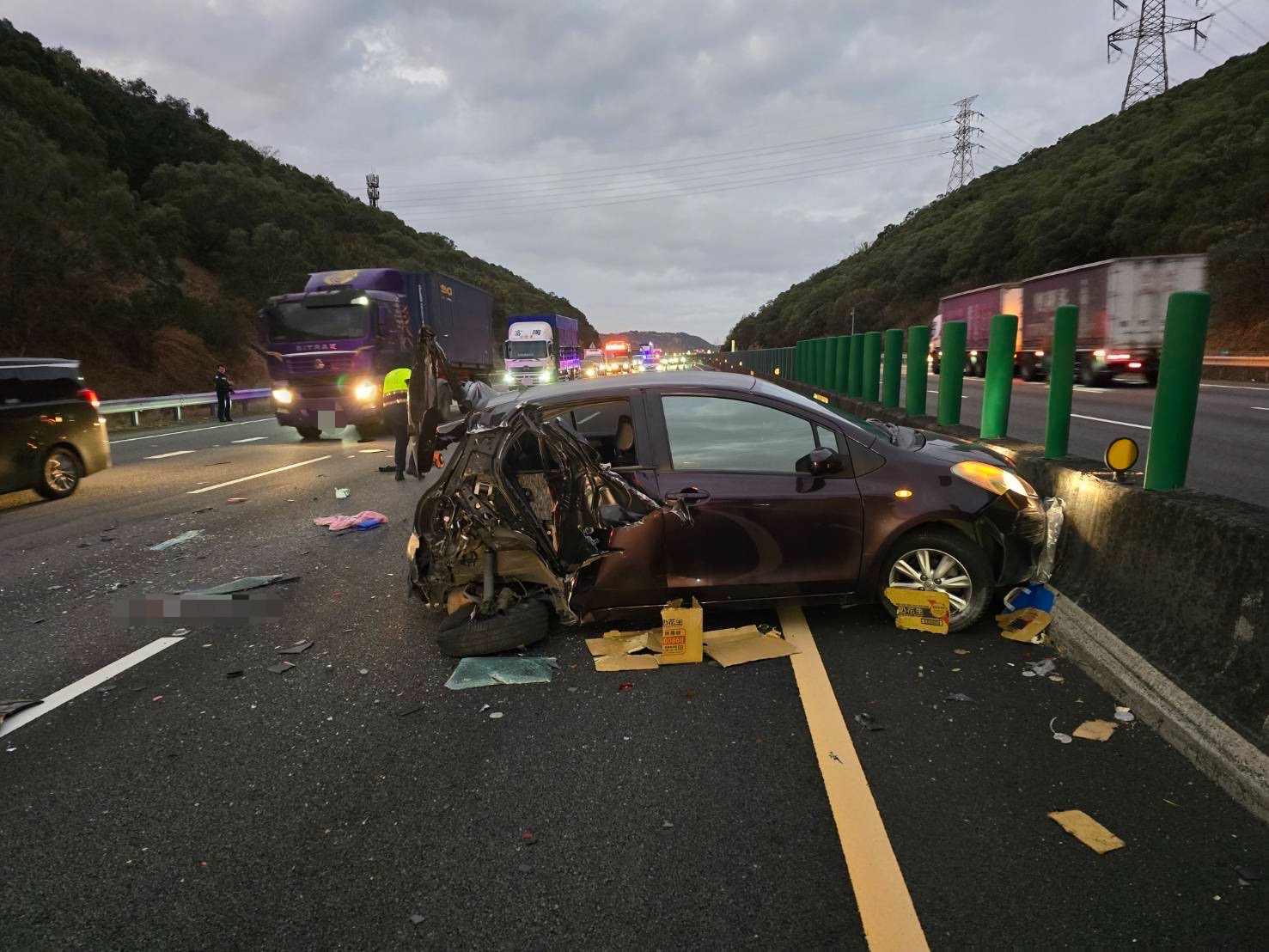 閃動物屍體釀禍!國道3號聯結車追撞自小客車 貨物散落一地