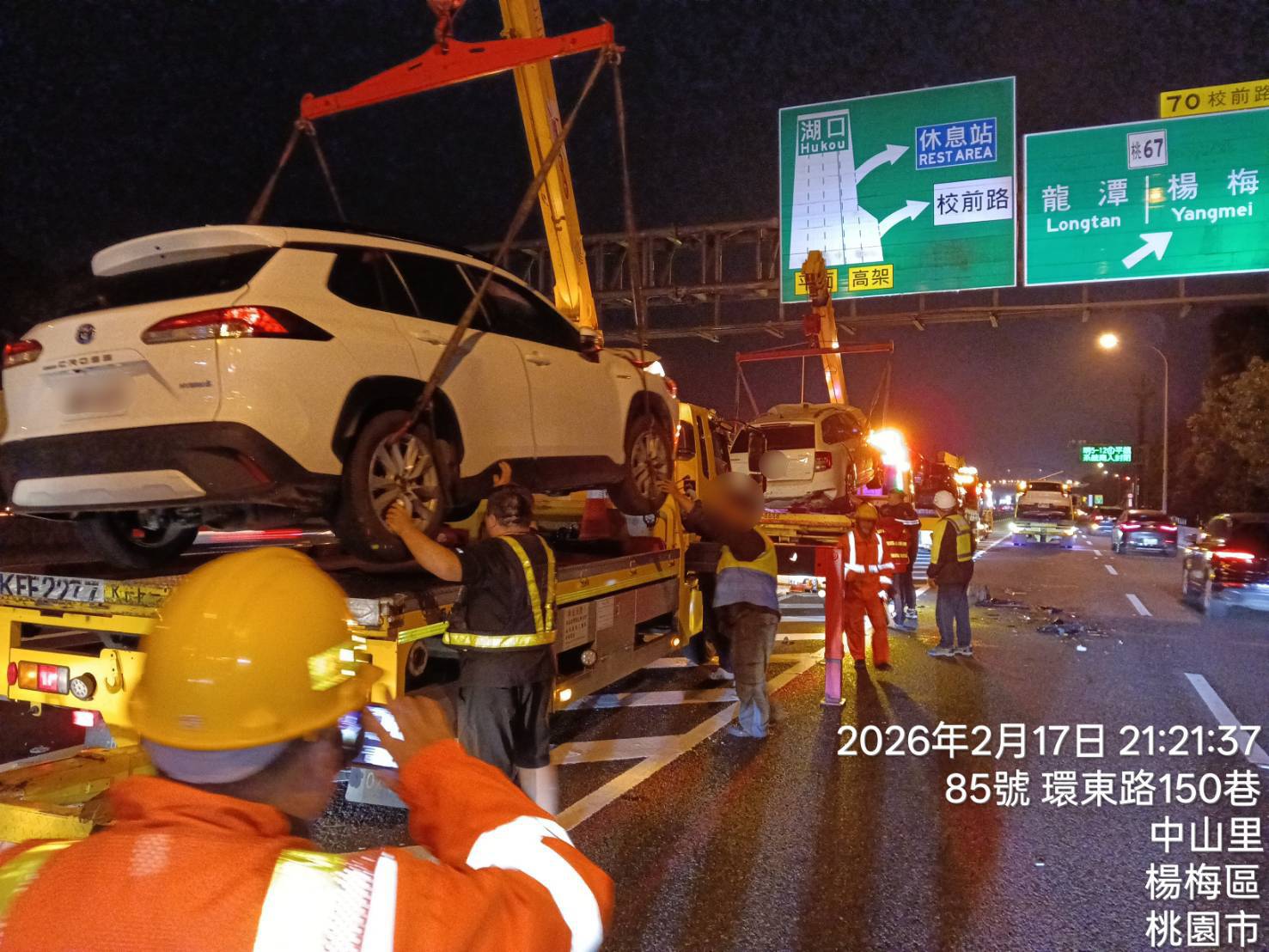 國道警察第一大隊表示,2月17日20時38分許獲報,國道1號高架南向70.4公里內側車道發生車故,現場無人受傷,駕駛引導至五楊分隊報案,各造駕駛人酒測值均為0。